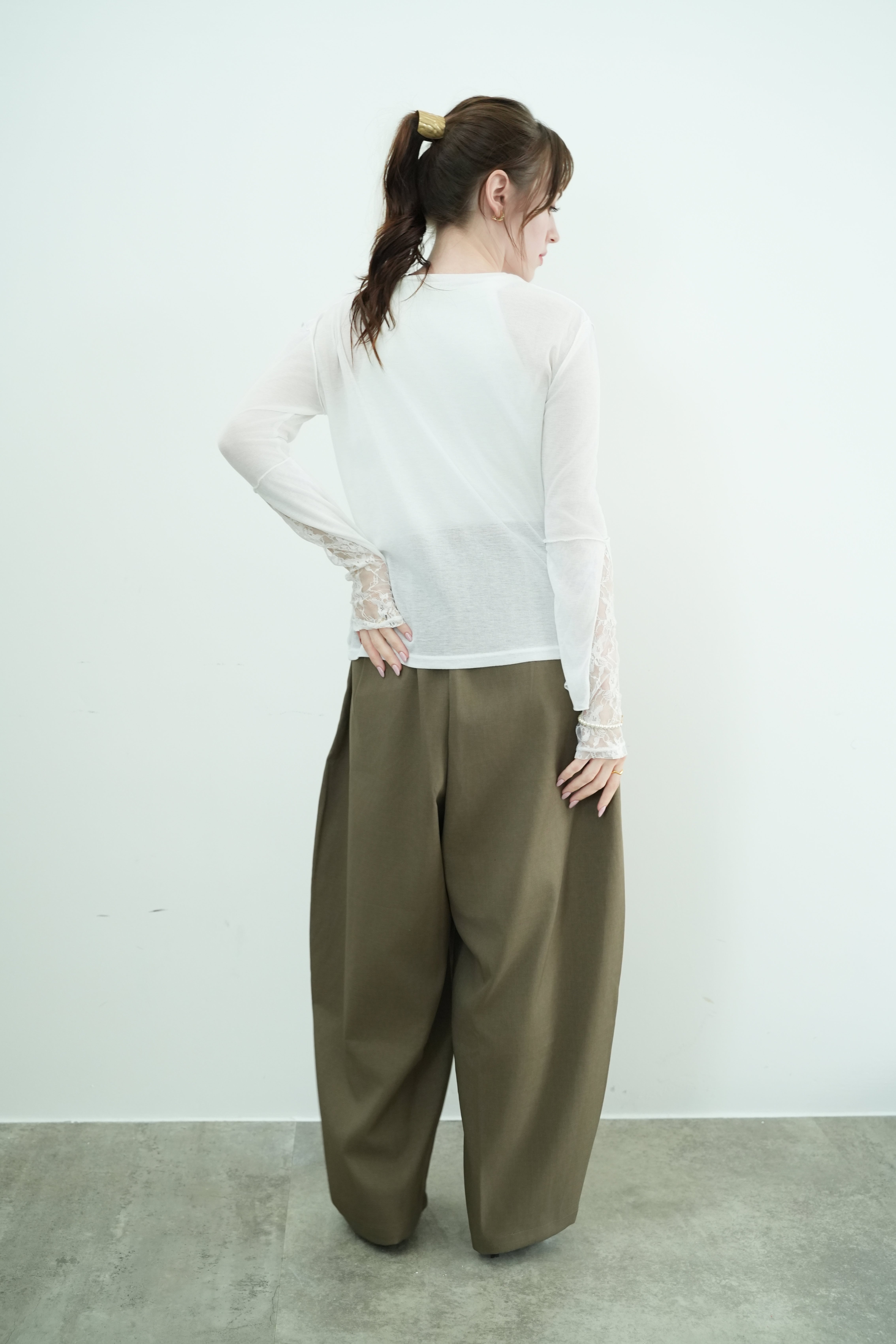 一見シンプルながら、袖に繊細なレースを施したデザインで洗練された存在感を放つロングスリーブトップス。肌がほんのり透けるレーススリーブが、さりげなく女性らしさを引き立ててくれます。ボディ部分は柔らかな素材で肌触りも快適。ジャケットやカーディガンのインナーとしても映える一枚です。ブラックはモード感をプラスし、ホワイトは透明感とやわらかさを演出。ミニマルな装いにひとさじの華を添える、ロゼのこだわりが詰まったアイテムです。