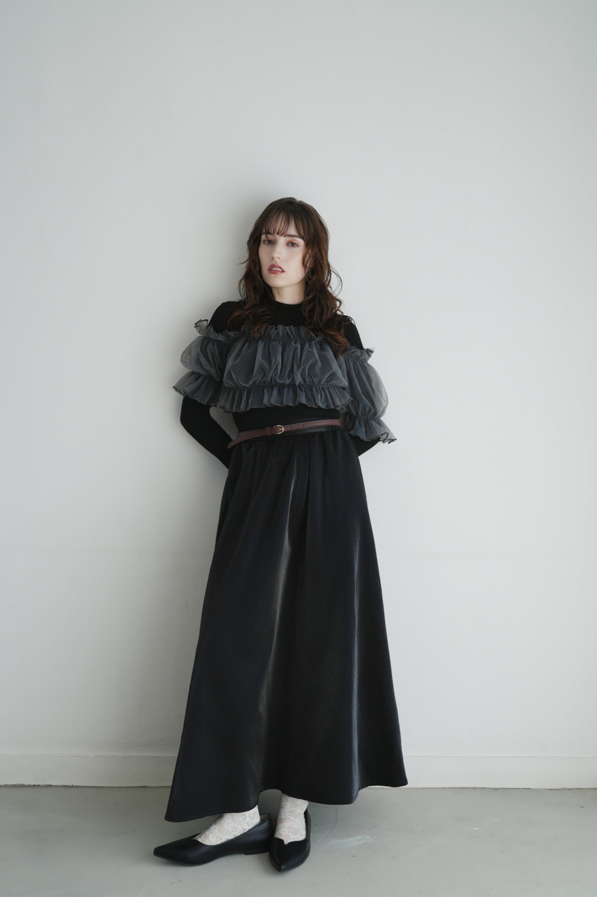 →ギャザーが下半身に自然な立体感を与え、バランス良く見せてくれます。