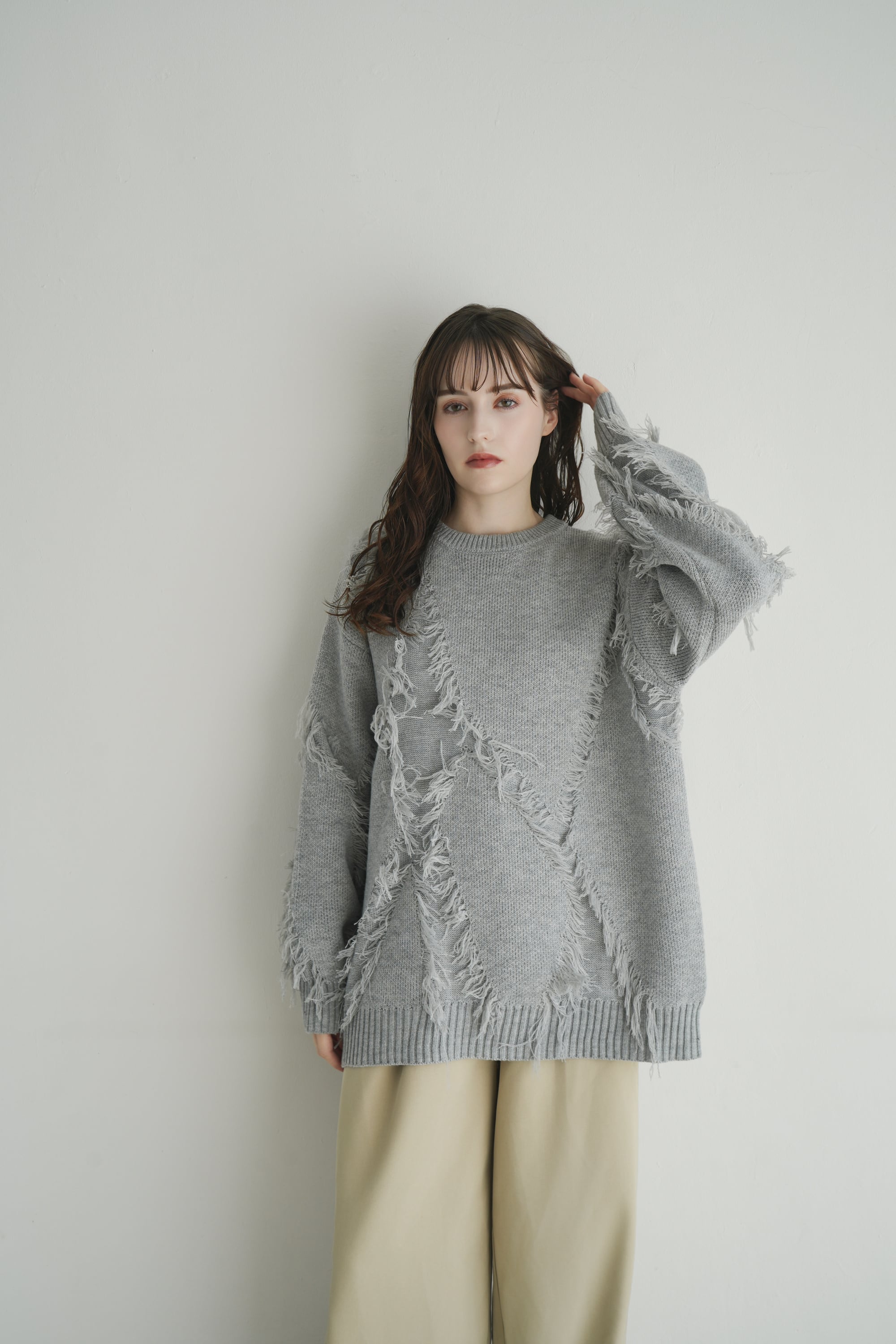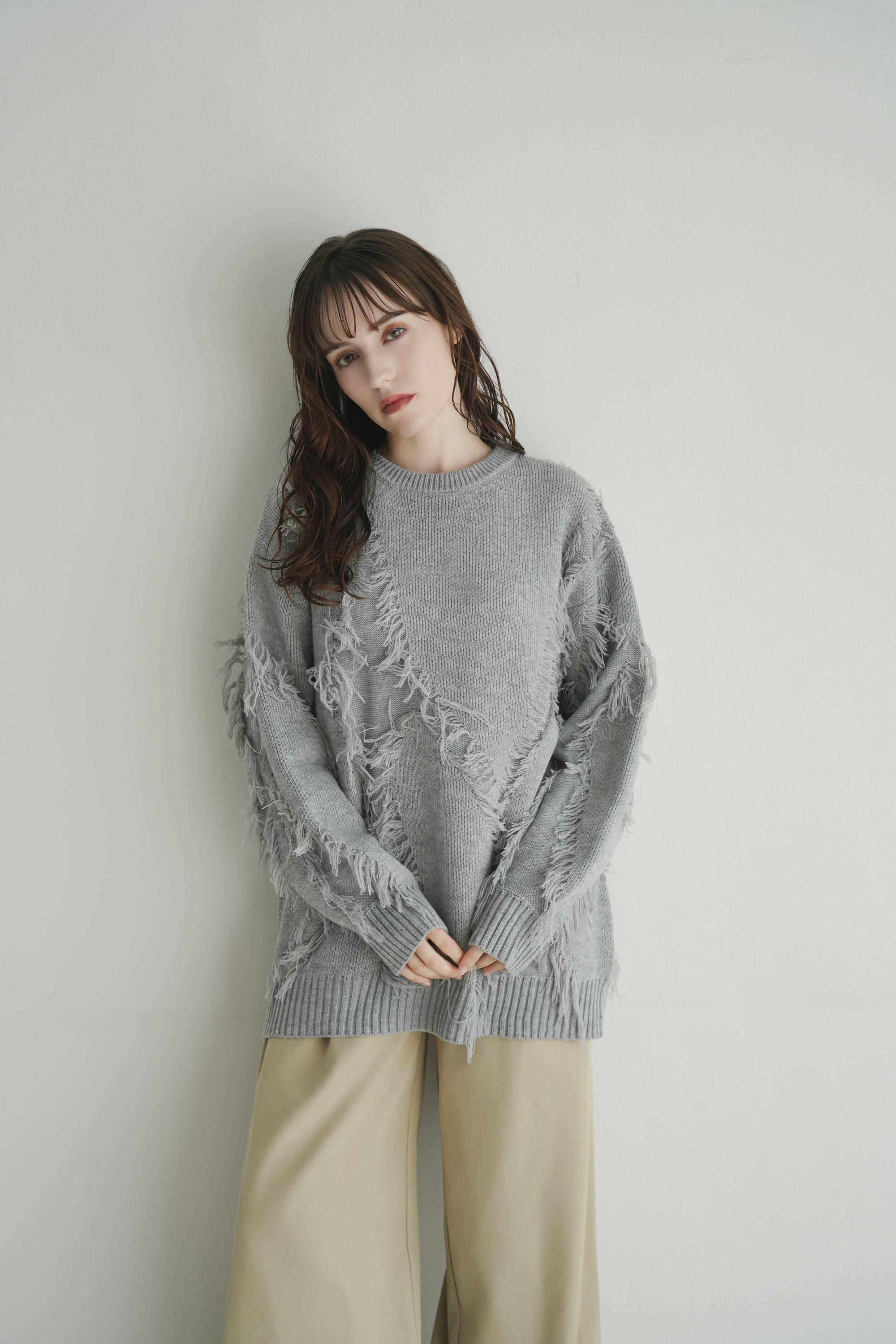 静かなニュアンスと遊び心が共存する、表情豊かなフリンジニット。