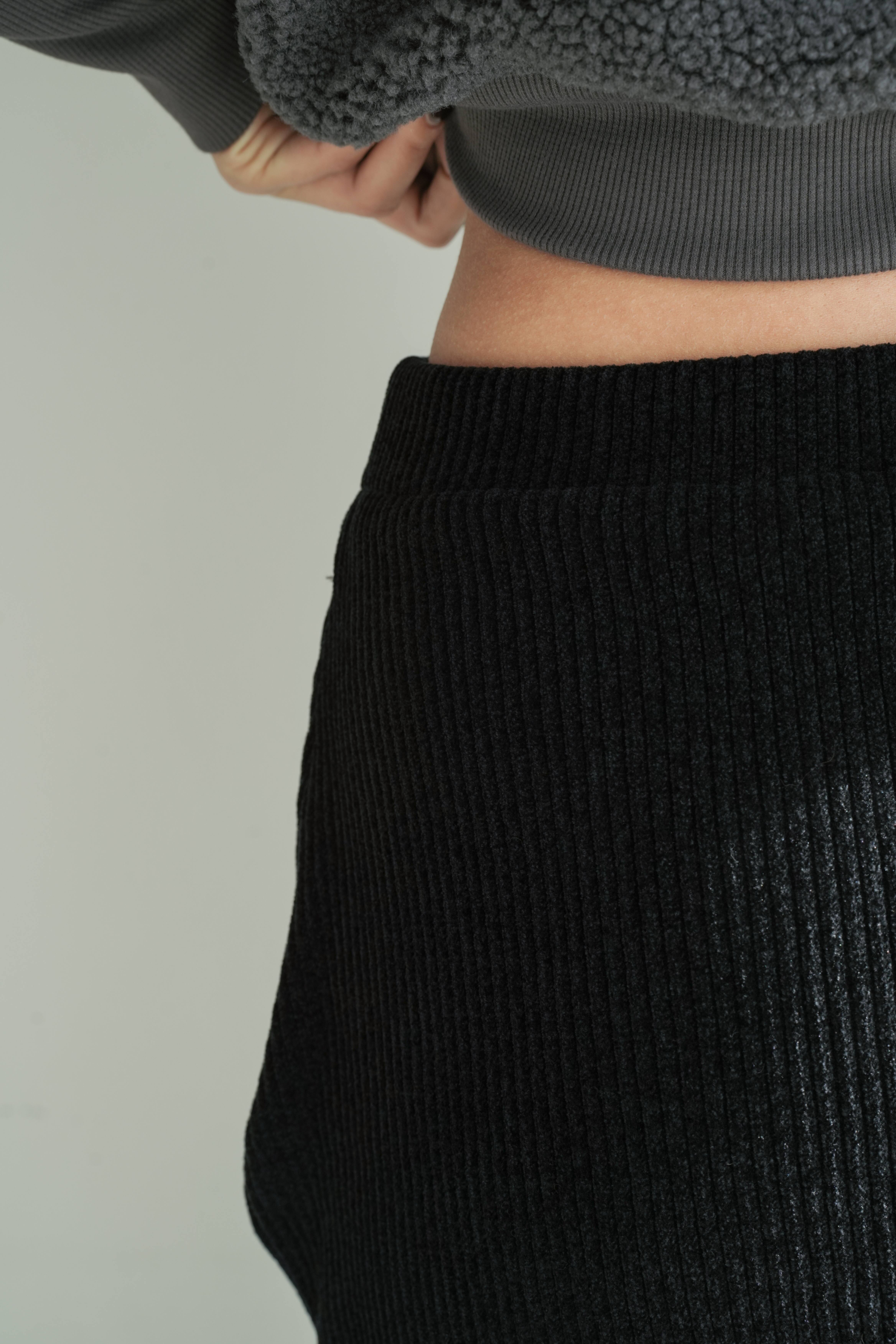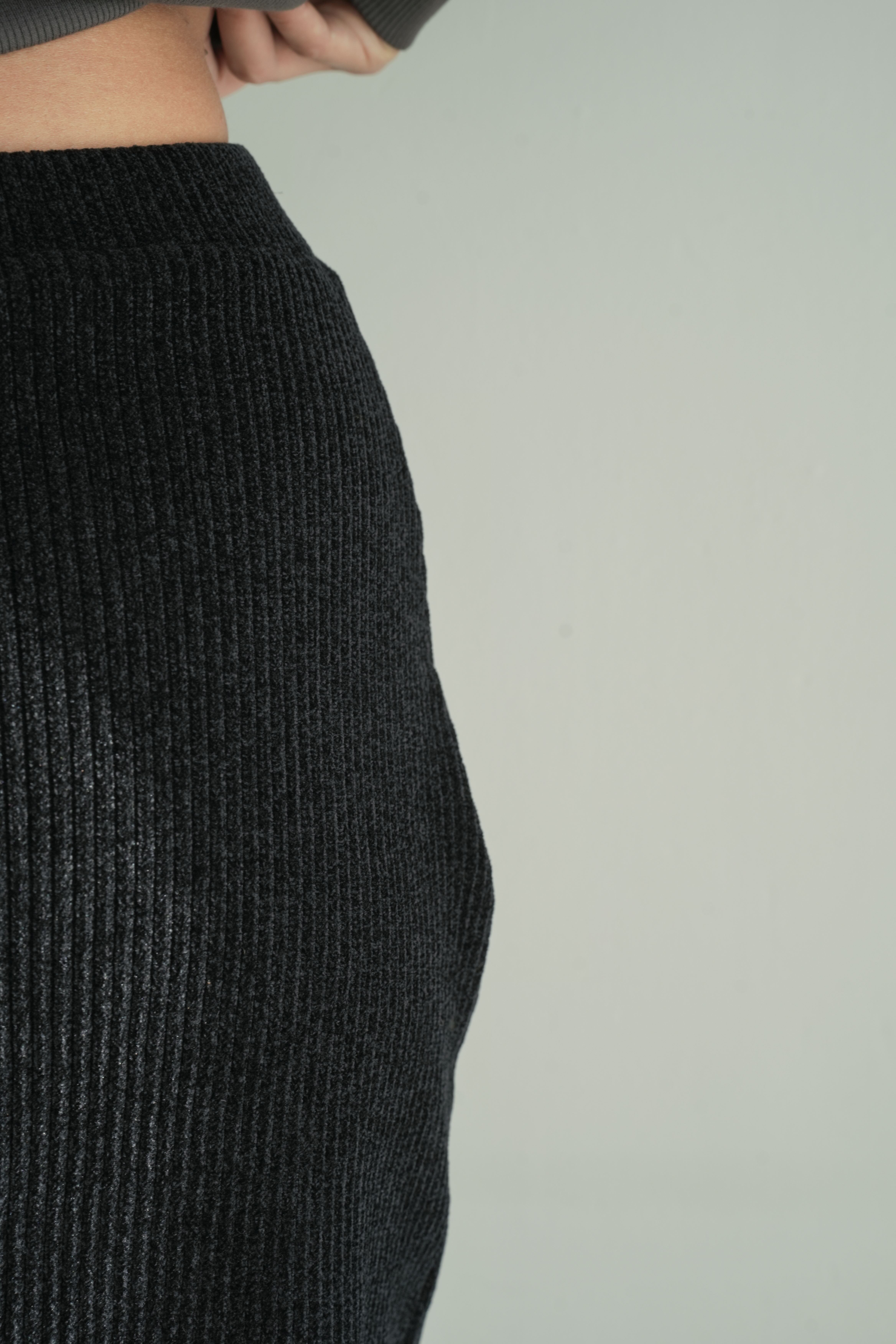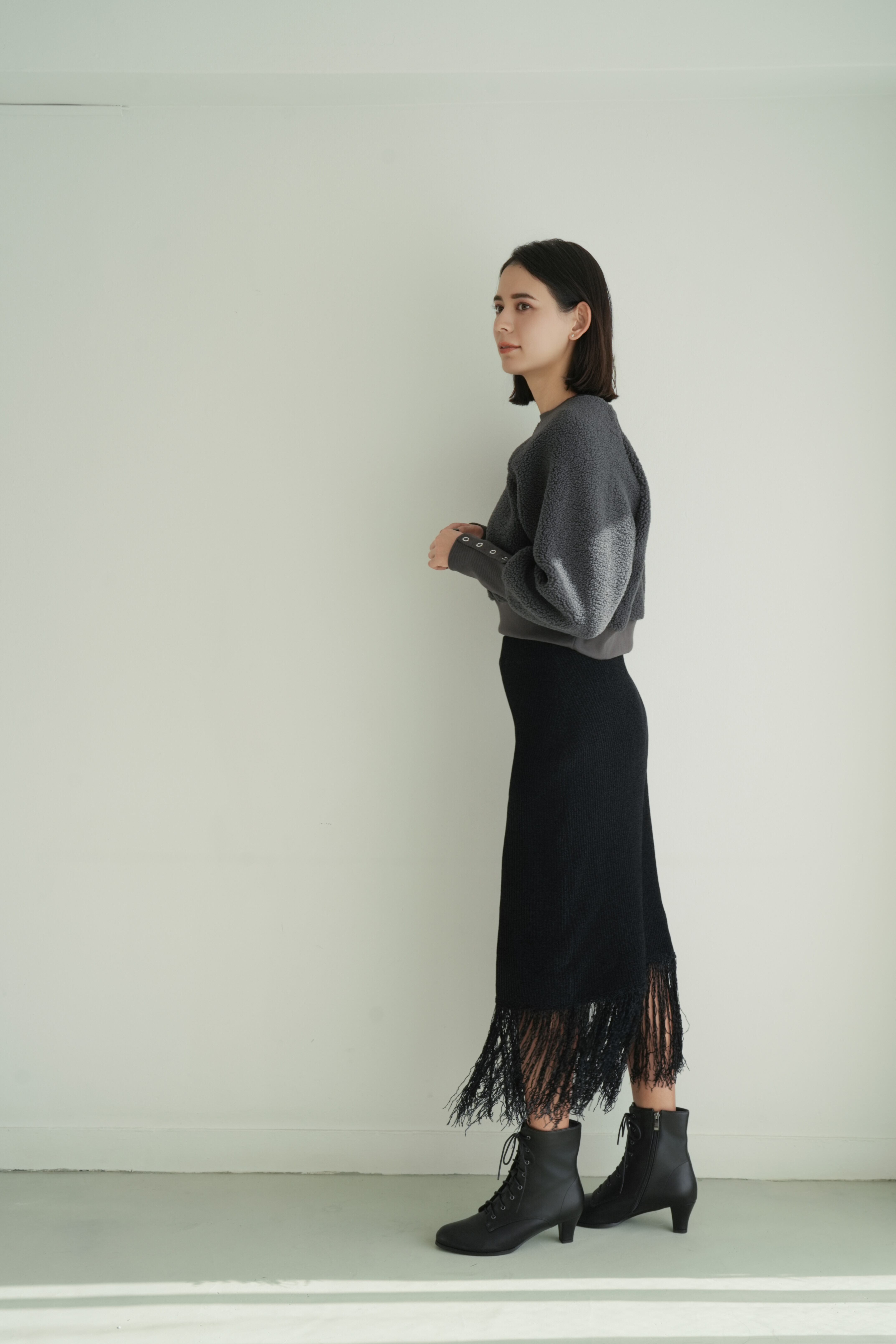 縦長のリブ編みが美しい表情を生む、フリンジ付きニットスカート。腰回りはすっきりと、裾にはたっぷりのフリンジがあしらわれており、動きのあるデザインが魅力です。フィット感のあるリブ素材が体のラインを程よく包み込み、縦のラインが強調されることでスタイルアップも実現。ブラックでもリブの陰影とフリンジの揺れが軽やかさを演出します。タイムレスなアイテムながら、装いにリズムを与える洗練された1枚です。